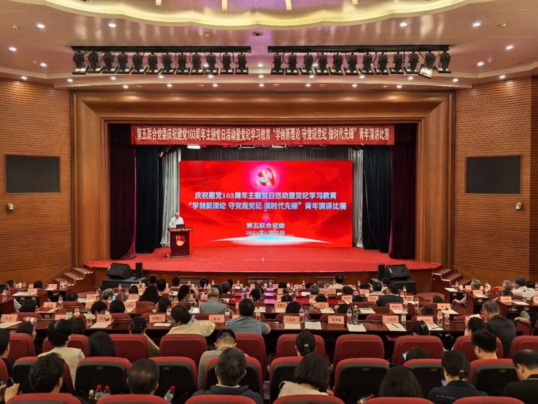6月25日,第五联合党委组织开展庆祝建党103周年主题党日活动暨党纪学习教育“学创新理论 守党规党纪 做时代先锋”青年演讲比赛,庆祝中国共产党成立103周年,深入学习贯彻党的二十大精神和习近平总书记关于党的纪律建设的重要论述,引导广大党员坚定不移听党话、跟党走,坚定拥护“两个确立”,坚决做到“两个维护”,真正把纪律规矩转化为政治自觉、思想自觉、行动自觉,进一步推动全面从严治党向基层延伸、向纵深发展,进一步推进党纪学习教育走深走实、见行见效。中央社会工作部三局有关同志莅临主题党日活动并指导工作。活动由第五联合党委副书记兼纪检委员夏岑灿主持。第五联合党委所属35家协会有关负责人、党组织负责人、全体党员和入党积极分子等360余人参加会议。