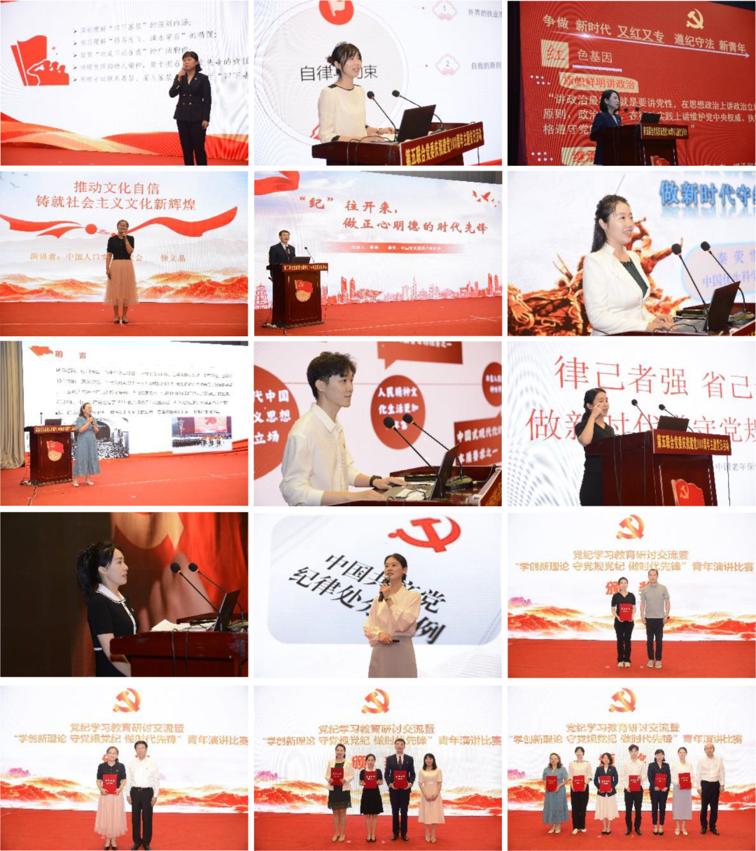 主题党日活动组织党纪学习教育“学创新理论 守党规党纪 做时代先锋”青年演讲比赛(决赛)。从初赛中脱颖而出进入决赛的11名青年理论学习骨干豪情满怀,激情演绎,从不同角度汇报学习党的创新理论、开展党纪学习教育丰硕成果,从不同侧面展示奋发有为、昂扬向上精神状态,从不同视角诠释爱岗敬业、敢于创新青春风采。主题党日活动及时对党纪学习教育研讨交流暨“学创新理论 守党规党纪 做时代先锋”青年演讲比赛中评选出的20名优秀宣讲员、19个优秀组织单位通报表彰,并在现场为获得青年演讲比赛特别奖、一等奖、二等奖、三等奖的青年理论学习骨干颁奖。同时主题党日活动还对8个先进党支部和60名优秀共产党员进行了通报表彰。