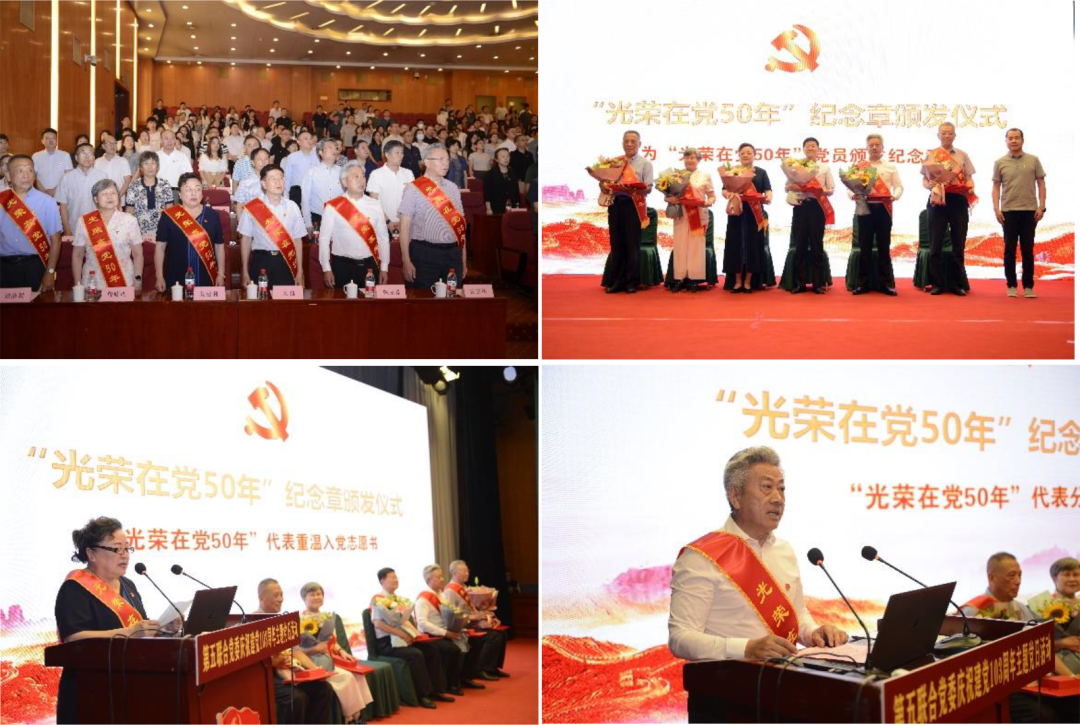 主题党日活动举行“光荣在党50年”纪念章颁发仪式,为6名“光荣在党50年”党员颁发纪念章及本人入党志愿书纪念册。中国老年保健协会副秘书长杨建利同志代表老党员重温入党志愿书,中国学生营养与健康促进会和中国药物滥用防治协会联合党支部书记、中国学生营养与健康促进会会长陈永祥同志代表老党员分享感言,着力用仪式感增加荣誉感,用责任感增加使命感,用归属感增加幸福感,激励广大党员奋勇争先、干事创业。