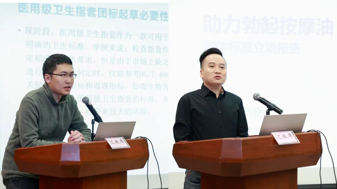 北京萨福予万物科技有限公司、百臻堂国际贸易有限公司分别对《医用级卫生指套》《助力勃起按摩油》两项团体标准立项进行了阐述。与会专家随后就提案所涉产品的安全性评估、技术规范、市场前景、试验检测方法和技术指标等方面与企业家代表进行了深入沟通。